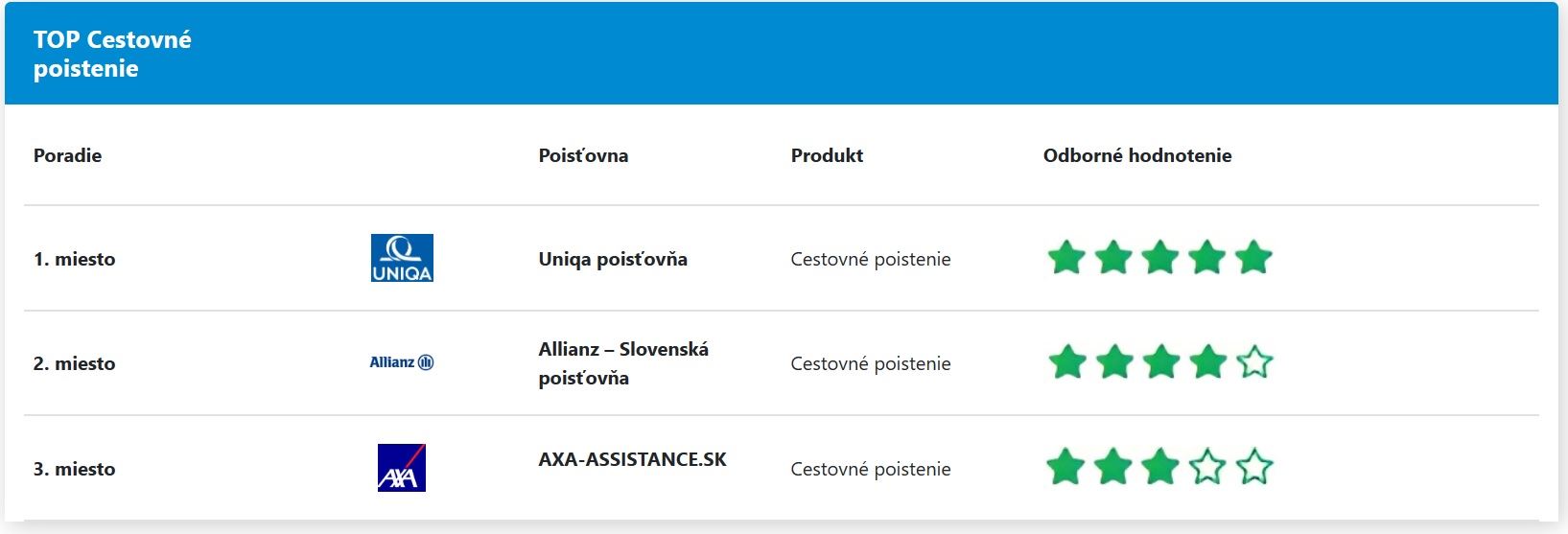 Tieto výsledky hodnotenia pochádzajú od dátovo analytickej spoločnosti Scott & Rose a súčasne prevádzkovateľa finančného portálu Finparáda. Táto spoločnosť vyhodnotila dostupné ponuky cestovného poistenia na slovenskom trhu.