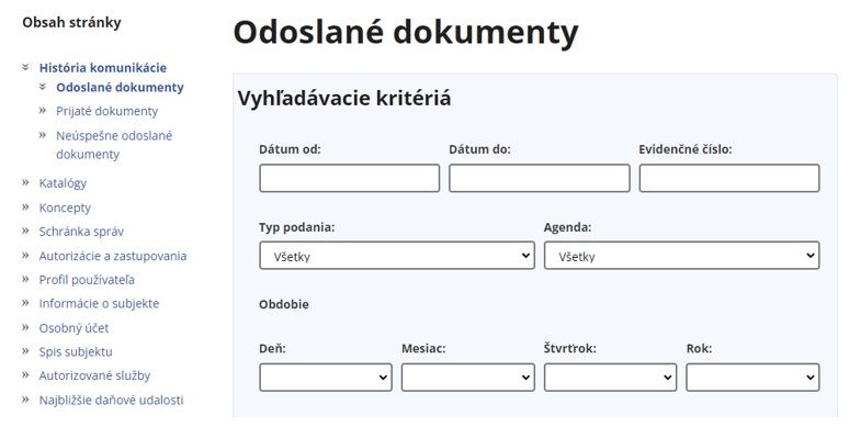 Po podpísaní a odoslaní oznámenia je ideálne preveriť jeho odoslanie v časti „História komunikácie”: