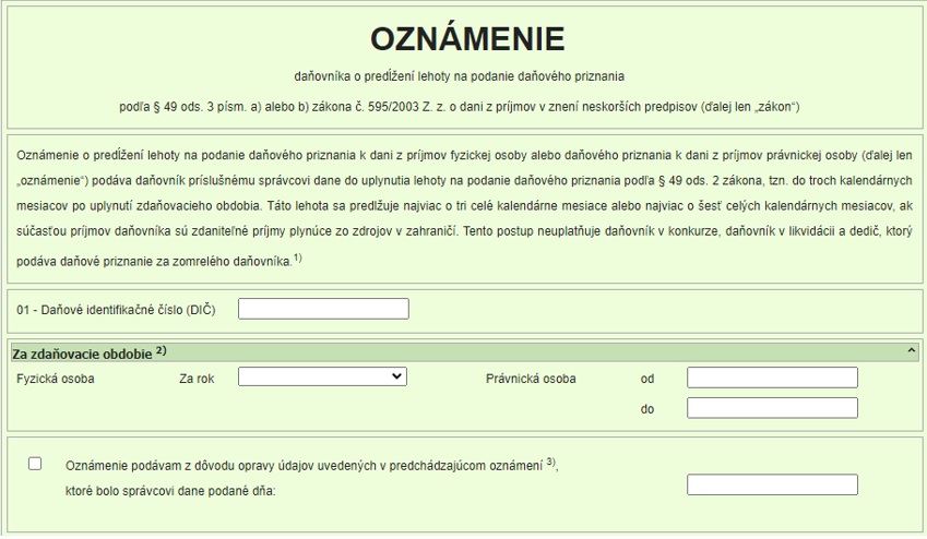 Dôležité: Ak mal daňovník príjem zo zdrojov v zahraničí a podáva oznámenie o odklade daňového priznania, v oznámení je ideálne uviesť najneskorší termín predĺženej lehoty (30. 9. 2024).