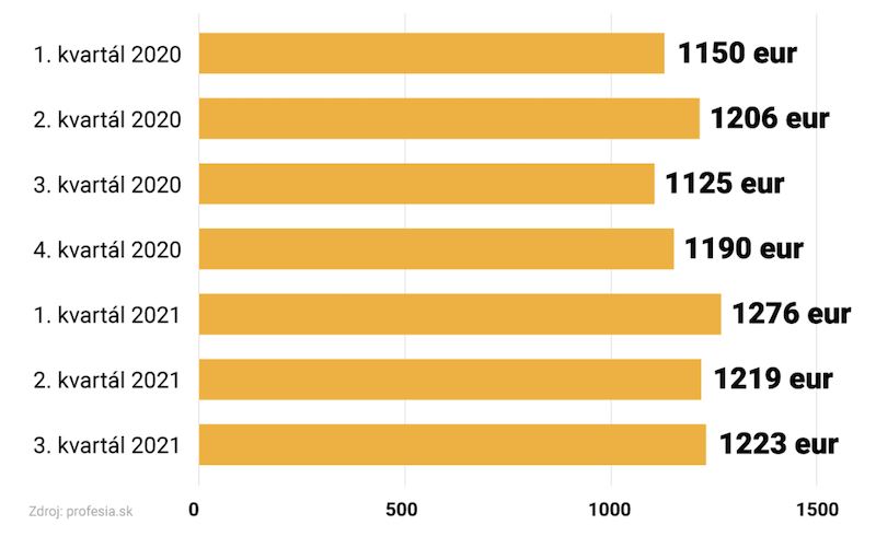 Priemerný plat v ponukách práce, ktoré uverejnili firmy v treťom kvartáli 2021, predstavoval 1 223 eur v hrubom. Podľa dát je to o štyri eurá viac ako priemer z druhého štvrťroka 2021.