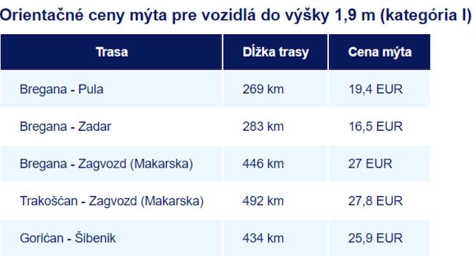 Koľko stoja diaľničné známky na ceste do Chorvátska