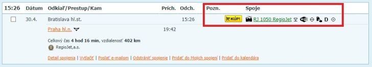 V rámci niektorých spojov, hlavne medzinárodných a súkromných dopravcov, je možné sa prekliknúť na online nákup lístka priamo zo stránky cestovných poriadkov. Stačí kliknúť na nákupný košík s nápisom "KÚP", ktorý je hneď vedľa názvu vlakového spoja.