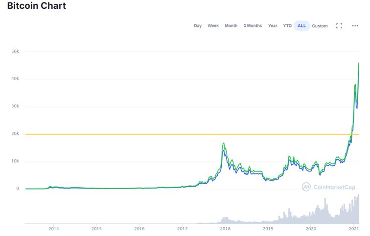 Počas štvrtkového obchodovania sa cena pohybovala podľa coinmarketcap.com o niečo nižšie, nad hranicou 46-tisíc USD. Podľa šéfa kryptomenovej burzy v Singapure, Luno Vijay Ayyar má Bitcoin obrovský potenciál, pretože je pravdepodobné, že po vzore PayPal a Tesly ho budú využívať aj ďalšie firmy. Môžeme teda očakávať, že jeho nákup alebo využitie v podobe platidla postupne oznámia aj iní veľkí hráči na trhu, čo by podporilo ďalšiu býčiu rally a dosahovanie nových maxím.