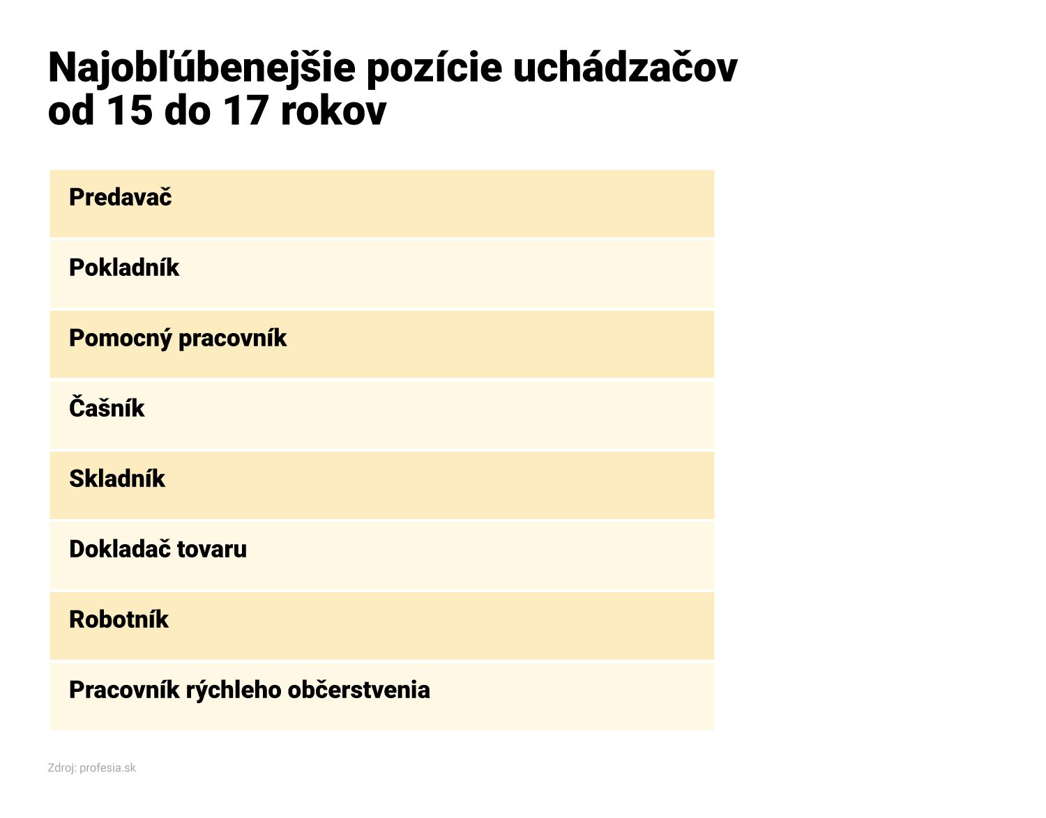 Analýza portálu Profesia.sk pozrela tiež na to, o aké pozície majú najväčší záujem neplnoletí Slováci od 15 do 17 rokov.