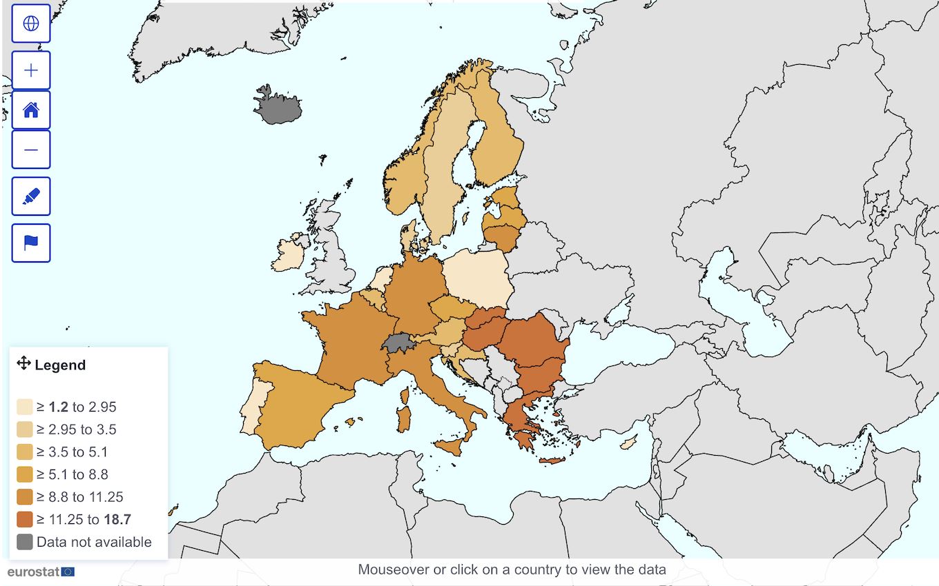 EurostatJedlo je pritom jedným z najzákladnejších ukazovateľov životnej úrovne. Práve to, či si domácnosti môžu pravidelne dovoliť jedlá bohaté na bielkoviny, vitamíny a minerály, slúži na hodnotenie úspešnosti boja proti chudobe a sociálnemu vylúčeniu naprieč úniou. Dáta ukazujú, že nejde len o problém marginálnych skupín ľudí bez práce, ale stále častejšie sa týka aj rodín s deťmi a pracujúcich, ktorí sa dostávajú do pasce vysokých cien potravín, bývania či energií.