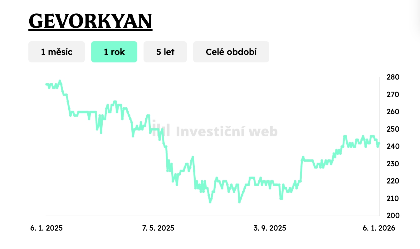Akcie spoločnosti Gevorkyan na Pražskej burze.