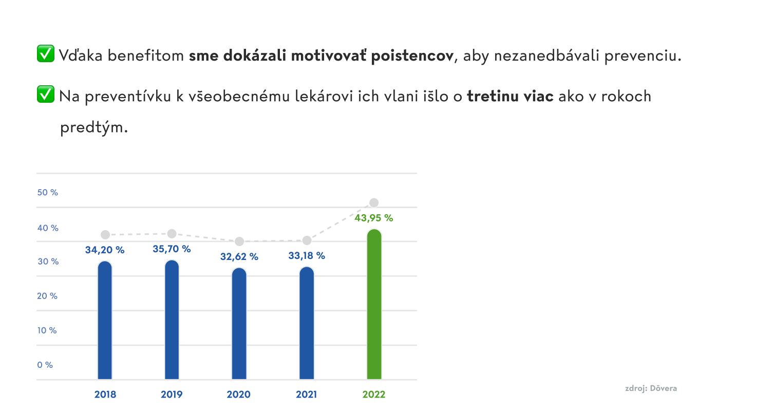 V Dôvere sa nám okrem mnohých iných vecí podarilo dosiahnuť zvýšenie prevencie u našich poistencov a to až o tretinu v priebehu jedného roka. Pri všetkej skromnosti stále môžeme povedať, že sme lídrom v elektronizácii slovenského zdravotníctva. A čo hovoria poistenci? Hlasujú nohami, zo štátnej poisťovne odchádzajú do súkromných. Za posledných 10 rokov stratila VšZP takmer pol milióna poistencov. Počet poistencov Dôvery sa zase zvýšil o približne 300-tisíc.